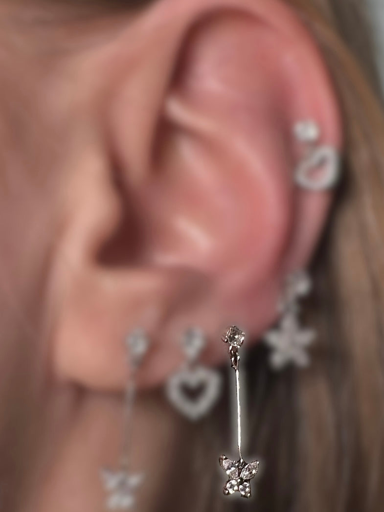 Design: coppia di orecchini con attaccatura & farfalla zirconata